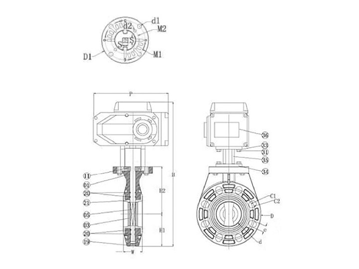 SIZE d C1 C2 H H1 H2 D D1 M M1 d1 d2 s w P n-e Operating torque