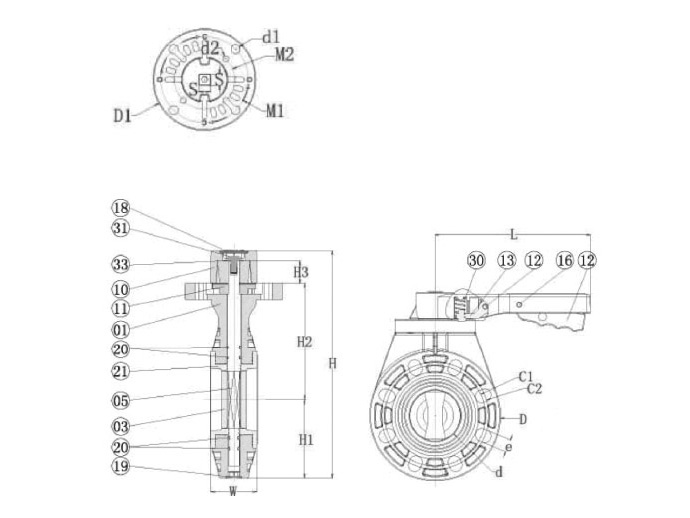 SIZE d C1 C2 H H1 H2 H3 D D1 M1 M2 d1 d2 s w L n-e Operating